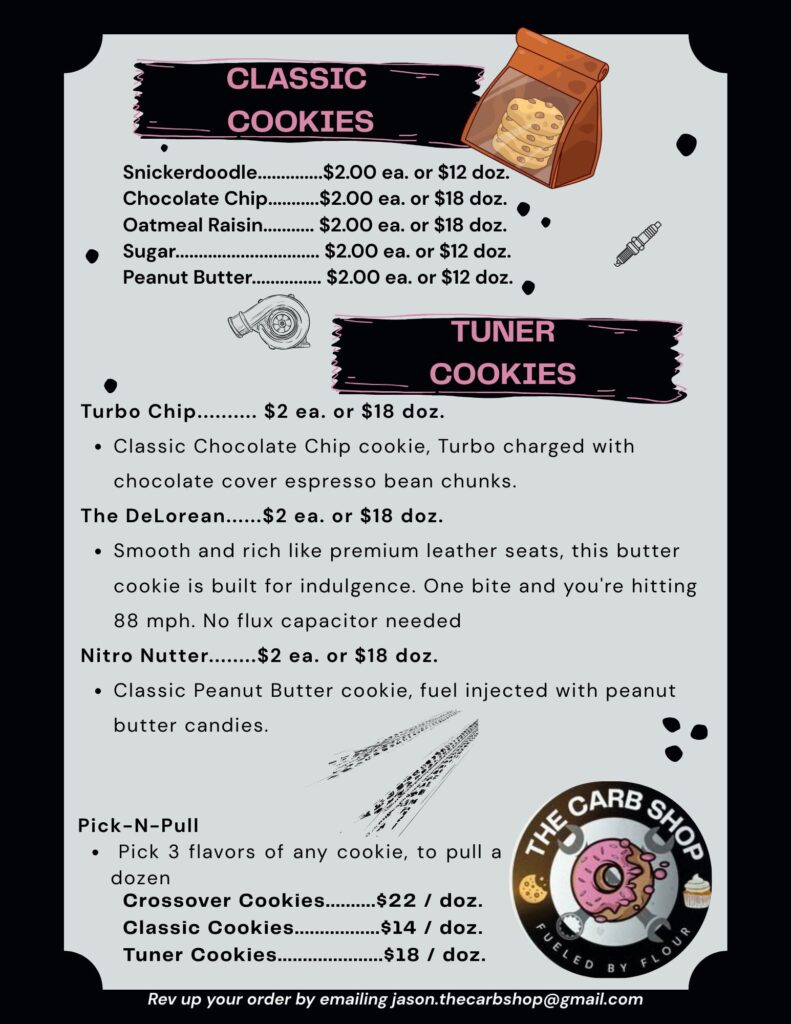 Welcome to The Carb Shop, where horsepower meets butter power. Founded by a creative gearhead with a sweet tooth, this one-of-a-kind bakery blends the thrill of automotive culture with the indulgence of handcrafted treats.